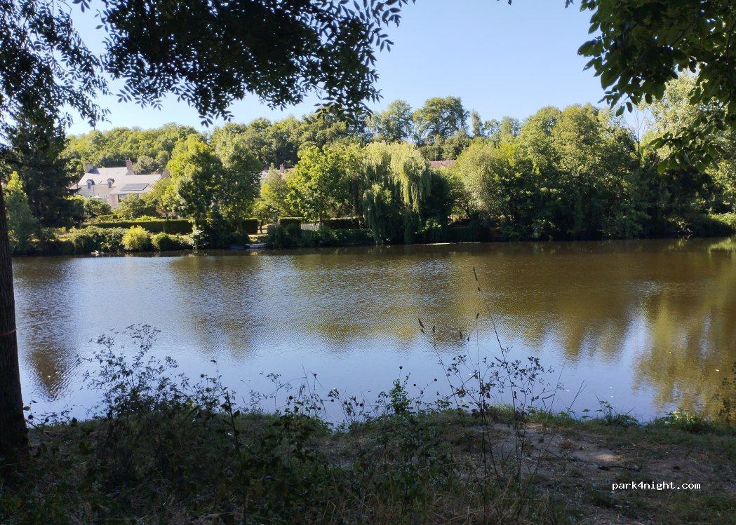 Très bel endroit au bord de l'eau. En effet, il vaut mieux s'avancer un peu dans le chemin pour ne pas gêner les pêcheurs. Notre GPS nous a guidé de l'autre côté de la rive pour nous faire prendre la passerelle pieds... Mais il suffit de reprendre le pont, de descendre la rivière et de tourner à l'indication "parcours de pêche" et de suivre le chemin en terre.