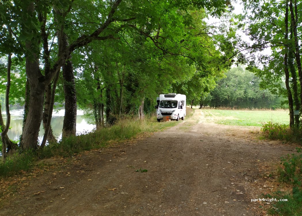 Très bel endroit pour pêcheurs mais en prolongeant le chemin, sur une cinquantaine de mètres, plus de pêcheurs et la rive est assez vaste pour tout type de véhicules. Nous avons passé une très bonne nuit. Juste le bruit de la départementale pas loin...