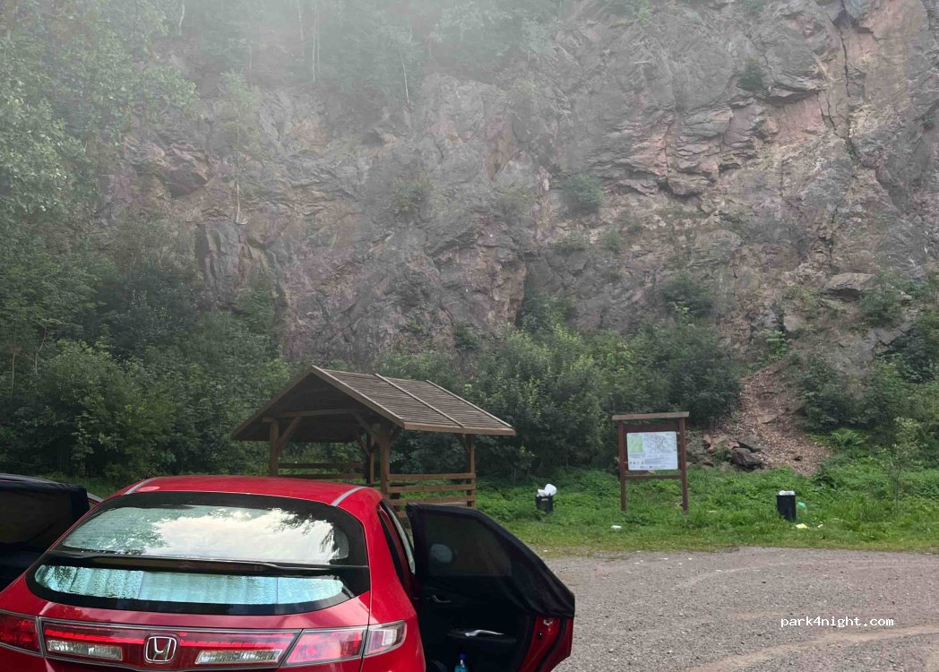 Wir haben hier eine ruhige Nacht verbracht. Bei schönem Wetter wird es bestimmt voll da man direkt am Kletterfelsen steht.