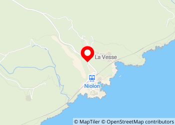 Parking by the road just at the entrance to Niolon. Beautiful sea view. Sloping. Beach accepting dogs. Superb little village. Without services. Quiet at night.