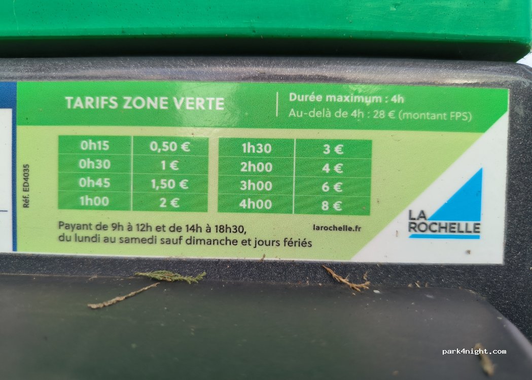 El lugar fue perfecto para mi furgoneta Camper de 6 metros. Es un sitio tranquilo de día y de noche, y muy cerca de las principales atracciones de La Rochelle!! Los domingos el parking es gratuito.