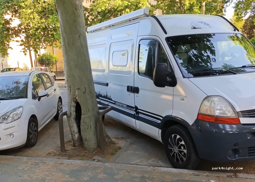Buen sitio para dormir con furgoneta camper aunque puede haber tráfico de coches. Zona sombreada por árboles. Contenedores de basura. Zona estratégica para vivir de cerca la magnífica ciudad.