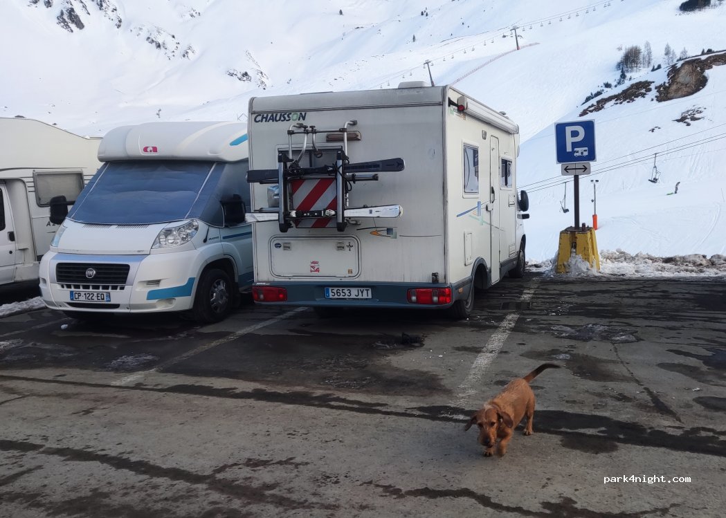 Único parking donde está permitida la pernocta de autocaravanas y está alejado de los remontes sin ningún tipo de servicio. En la Mongie no nos quieren, por lo que no merece la pena venir.