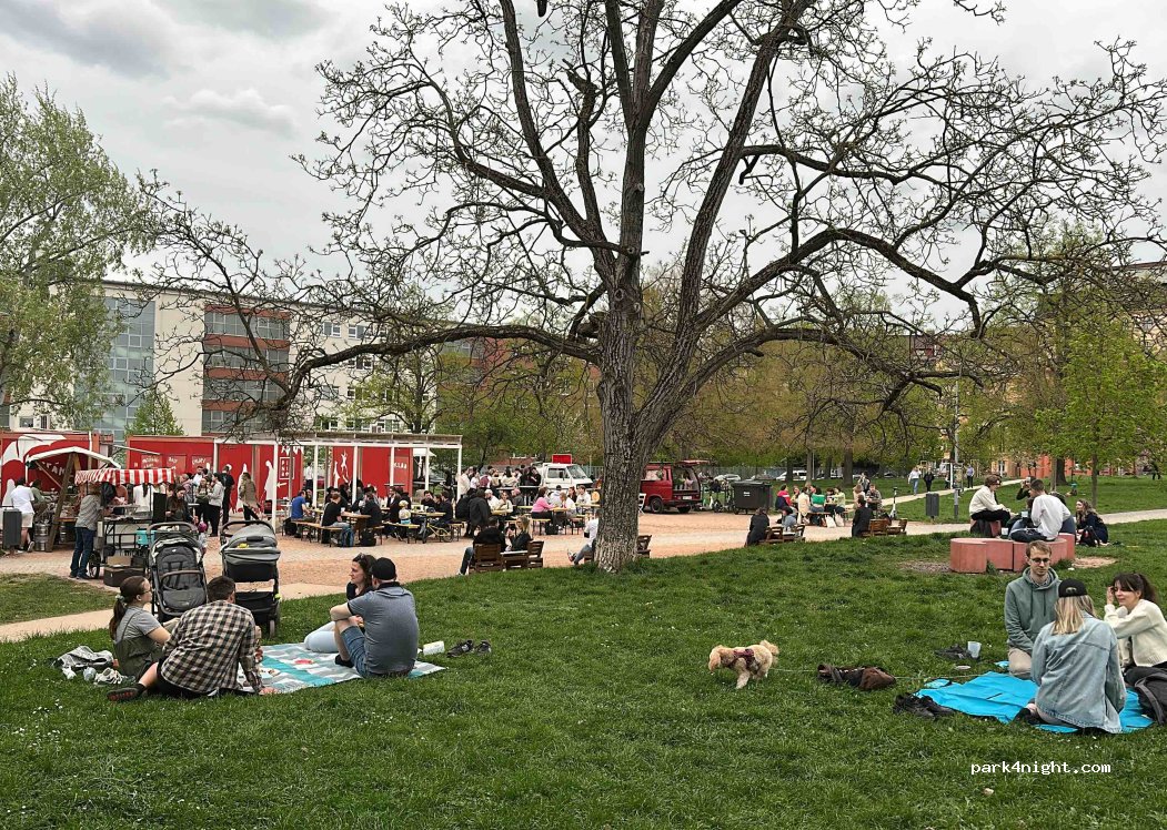 Toller Platz zum Übernachten; wir haben uns vollkommen sicher gefühlt. 3 Straßenbahn-Stationen in die City (20 Kronen). Der Park ist wirklich chillig, die Bar und die Toiletten in den Containern in der Park-Mitte super (ab 9 bzw. 10 Ihr geöffnet). So geht freistehen ;-)