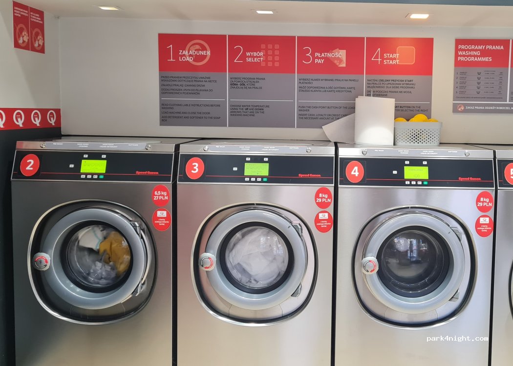 Pranie 6,5 kg : 27 zł, suszenie 15 min : 13 zł. Na pewno lepsza alternatywa dla pralek na stacjach. W trakcie mojej wizyty akurat doszło do przerwy w dostawie prądu, bo doszło do przeciążenia. Podobno jest to dośc częste. Właściciel szybko przyjechał i przy okazji wyczyścił filtry w suszarkach.