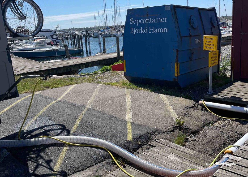Sehr schöner Platz. Wasser am Platz verfügbar. Toilettenentleerung etwas außerhalb und versteckt. Grauwasser Entleerung auf der anderen Seite des Hafens. WC, Duschen, Waschmaschine und Trockner (gegen Gebühr) und Geschirr Spülbecken einige Meter außerhalb des Stellplatzes. Die Stellplätze seitlich etwas hängend aber nicht problematisch. In der vorderen Reihe super Aussicht auf Öckerö und Hälsö.