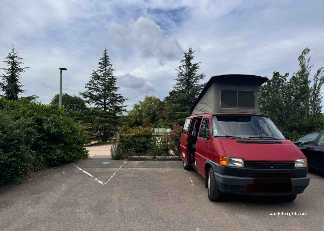 Pour une nuit ça passe ! Très proche de la route ! Parc à proximité pour les enfants et possibilité de faire le tour du lac a vélo ! Pas de barrière de hauteur et parking fin de journée libre ! CC 7m5 Nikel ! Toilettes publics aucun autre service !