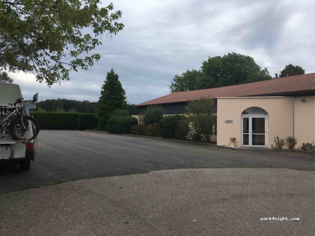 Parking de salle polyvalente. Nuit super tranquille. Jolie vue à 100m derrière une barrière