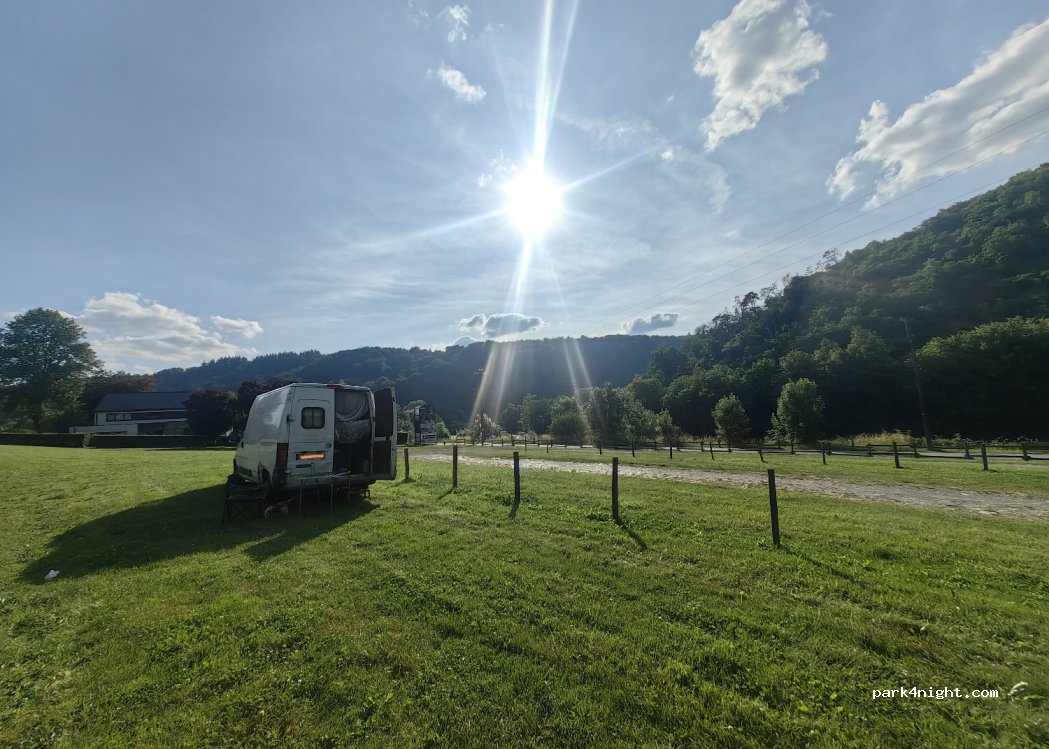 Endroit idéal si vous comptez faire du kayak ou comme étape le long de la Semois. Bien à l’écart de la route, juste le long de l’eau, a 50m du départ Kayak et 500m d’un petit supermarché, boucherie et boulangerie. Pas d’installation mais très calme et propre.