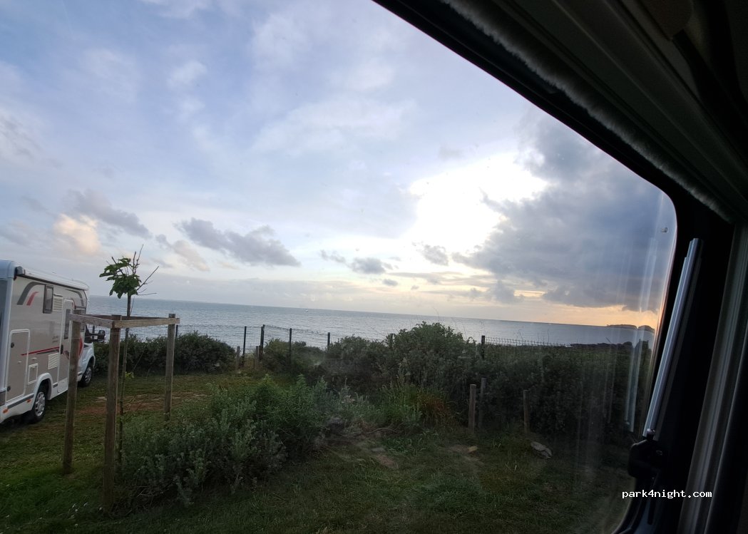 Camping sympathique avec emplacement camping-car en bord de mer. Vue fabuleuse ! Mais pas de réception TV, ni WiFi,