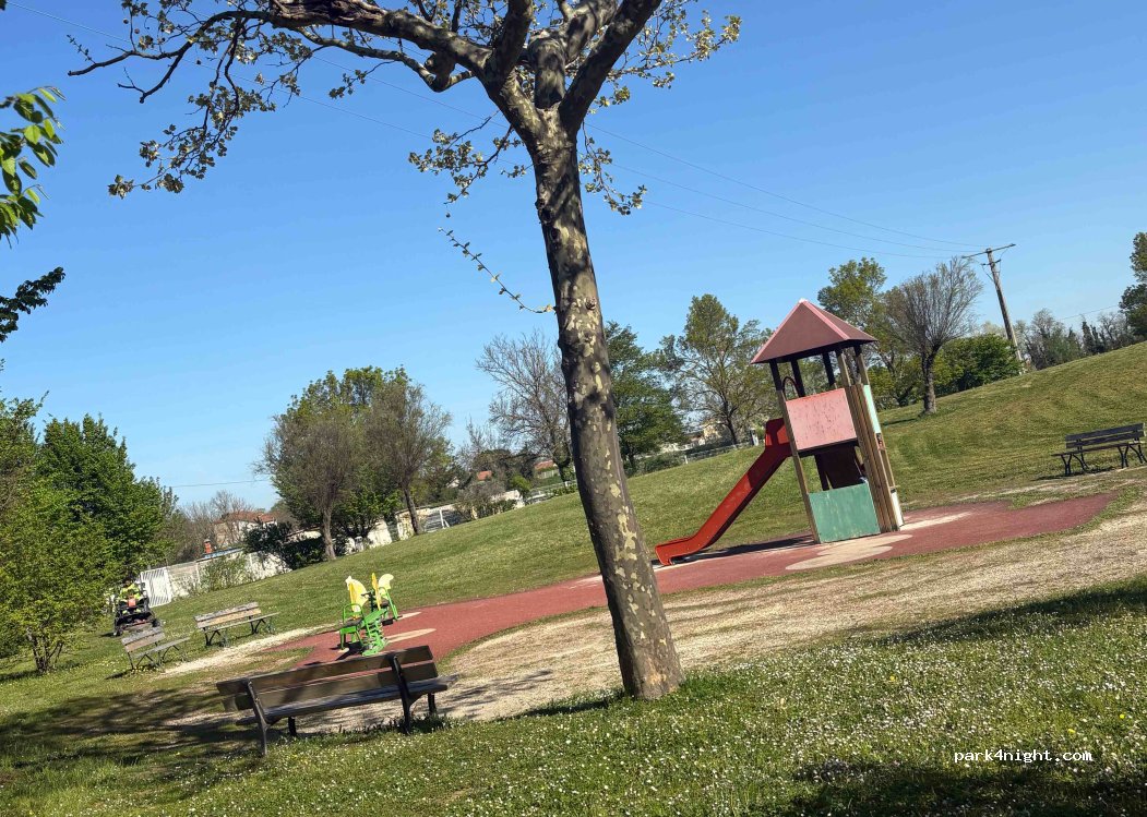 Très bon endroit pour dormir, quelques jeunes en début de soirée mais sinon nickel pour dormir. Zone à plat. Avec jeux pour enfant à côté