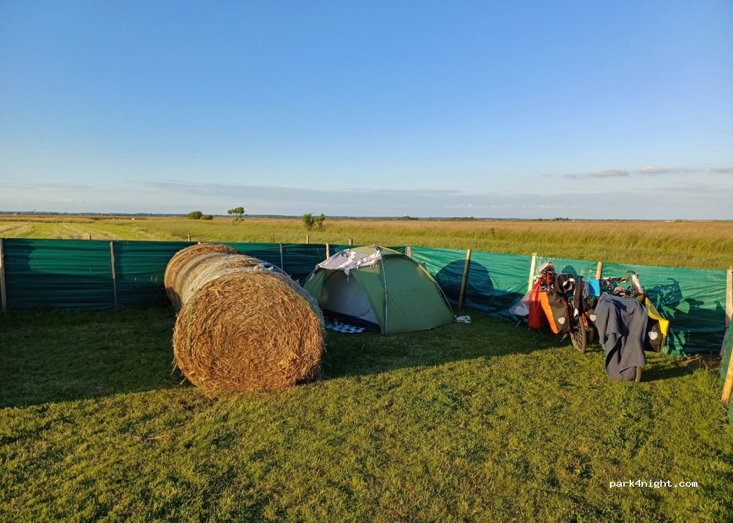Ein wunderschönes angelegter Platz in der Weite des Marais ; ). dankbar die verschiedenen wind-regengeschütze Bereiche -warme&super Dusche. Herrlich nach einem langem Radltag hier so freundlich empfangen zu werden, obwohl schon ziemlich spät! Möglichkeit frische Eier zu kaufen wenn gewünscht; ))