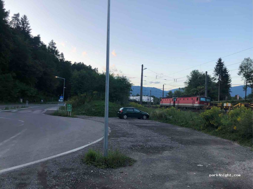 Parking jour uniquement - très moche et dénué d’intérêt car situé au bord de la route et contre le chemin de fer et sous un pont! Son seul et unique intérêt est de se trouver à moins de 5 minutes à pied des bains de Kärntentherme et d’être gratuit de surcroît. Prendre le chemin pédestre à gauche après le giratoire pour rejoindre les bains qui sont vraiment très bien! Aucun service