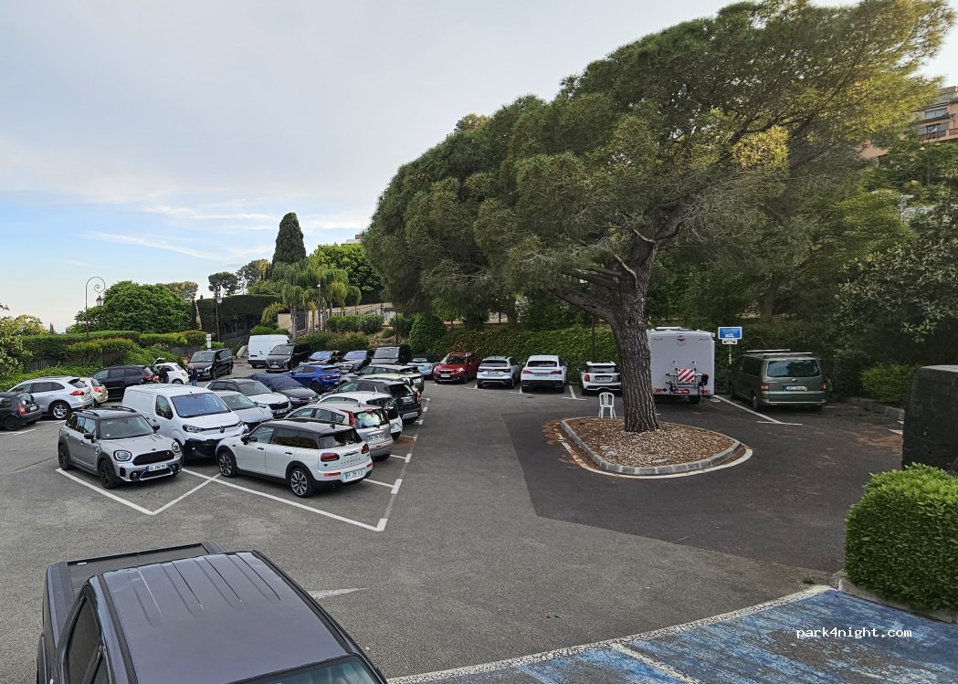 Just parked our RV here for a night and booked an AirBnB in Cannes. This car park was free and had 2 large RV spots, which we used to park for about 24 hours with no troubles. Seemed very safe. We were lucky to find the park.