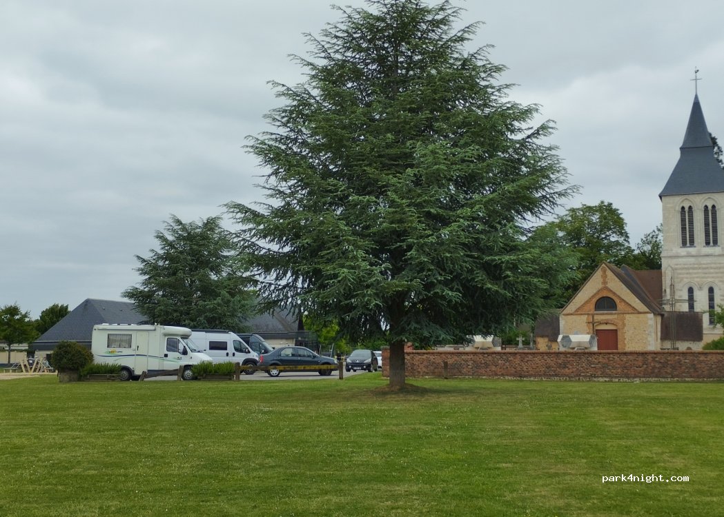 Parking hall, next to the cemetery parked 1 night in 2017, very quiet, without any service you have to be autonomous, very well to troubleshoot