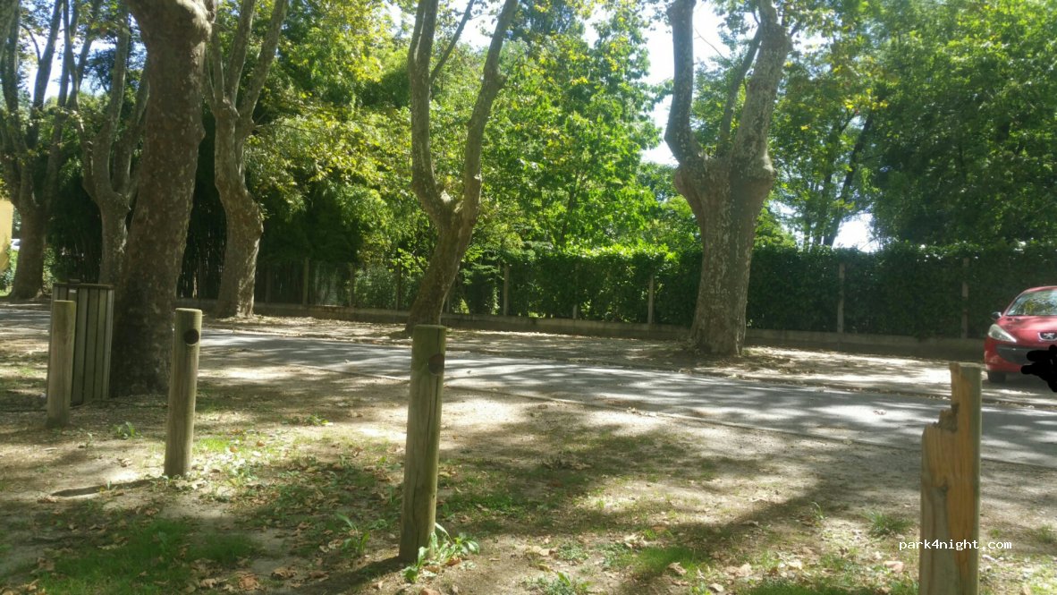 Endroit calme avec grand parking. Une vue très sympa en bord de ruisseau et face à l’église. Tout y est : tables de pique-nique, poubelles et le tout est ombragé par des platanes, top !