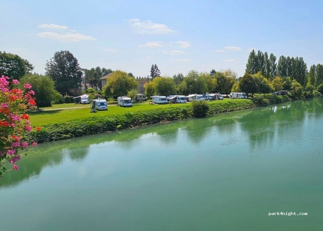 Aire municipale de camping-car très bien et très bon accueil du gardien. Située au bord de la rivière la vue est agréable et à la nuit tombée les lumières d'en face se reflètent dans l'eau. Très calme la nuit, un peu de bruit le matin quand les gens repartent au travail. Coût pour la nuit, 1 camping-car et 2 adultes, 9.44€, électricité, eau et vidanges comprises. Merci à la municipalité.