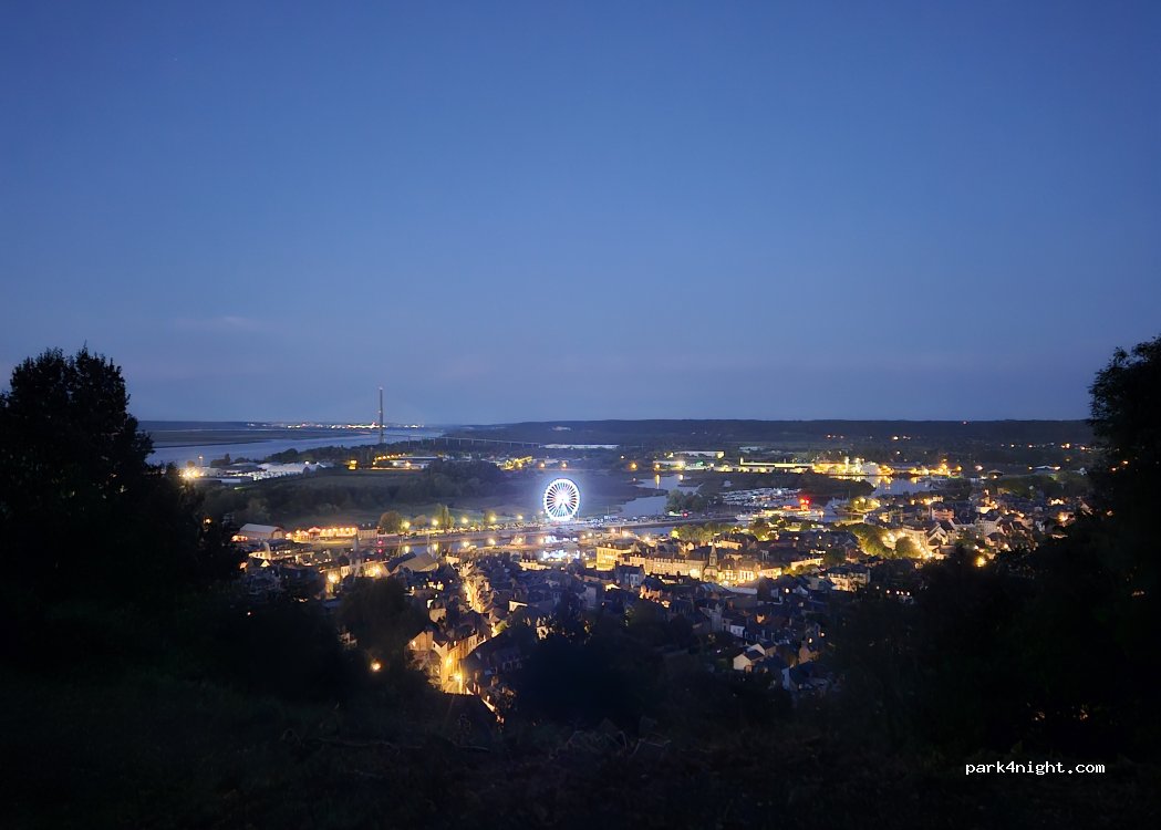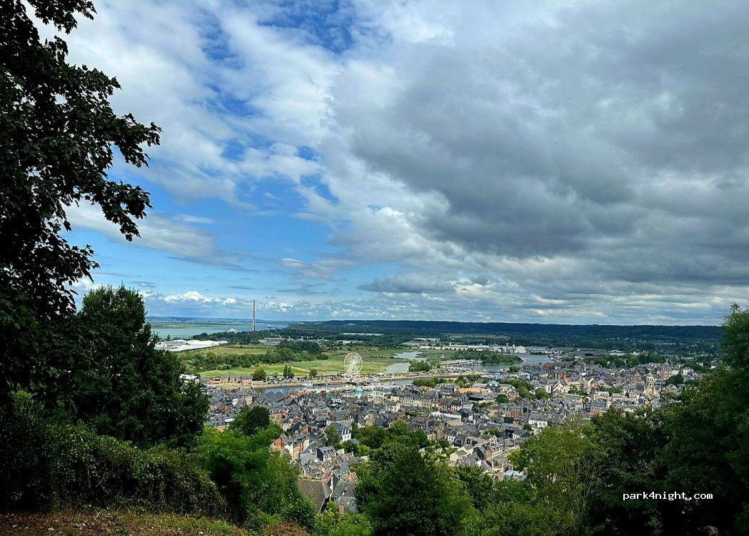 Vue extraordinaire sur Honfleur, voir aussi la chapelle et ses 24 cloques. Malheureusement il est interdit d'y passer la nuit(voir panneau au niveau de la chapelle)