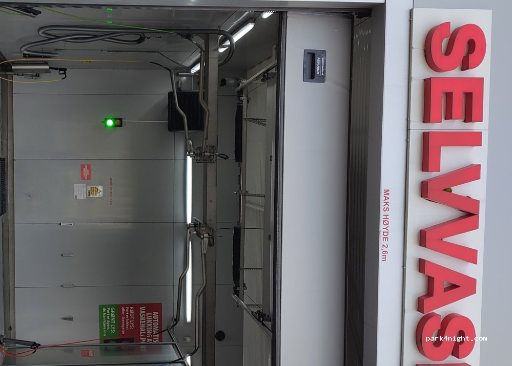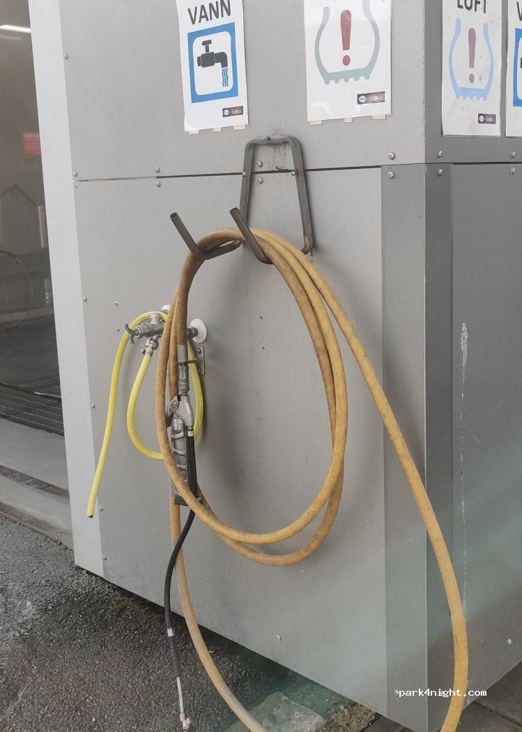 Agua potable gratuita y con buena presión. Lleva tu manguera y adaptador de 1 pulgada. El empleado de la gasolinera fue muy amable. Llenamos gasoil también a buen precio 19,99nok/l, y justo cuando salíamos había subido 4nok/l. Tenga esto en cuenta cuando viaje por Noruega, el precio del combustible varía según la hora. En esta estación también es posible lavar la furgoneta hasta 2,7m