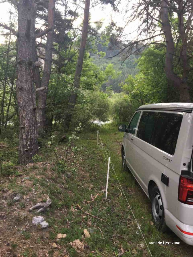 Un bel endroit, calme au bord de la rivière. Superbe vue. Accès compliqué pour fourgon de 6m.