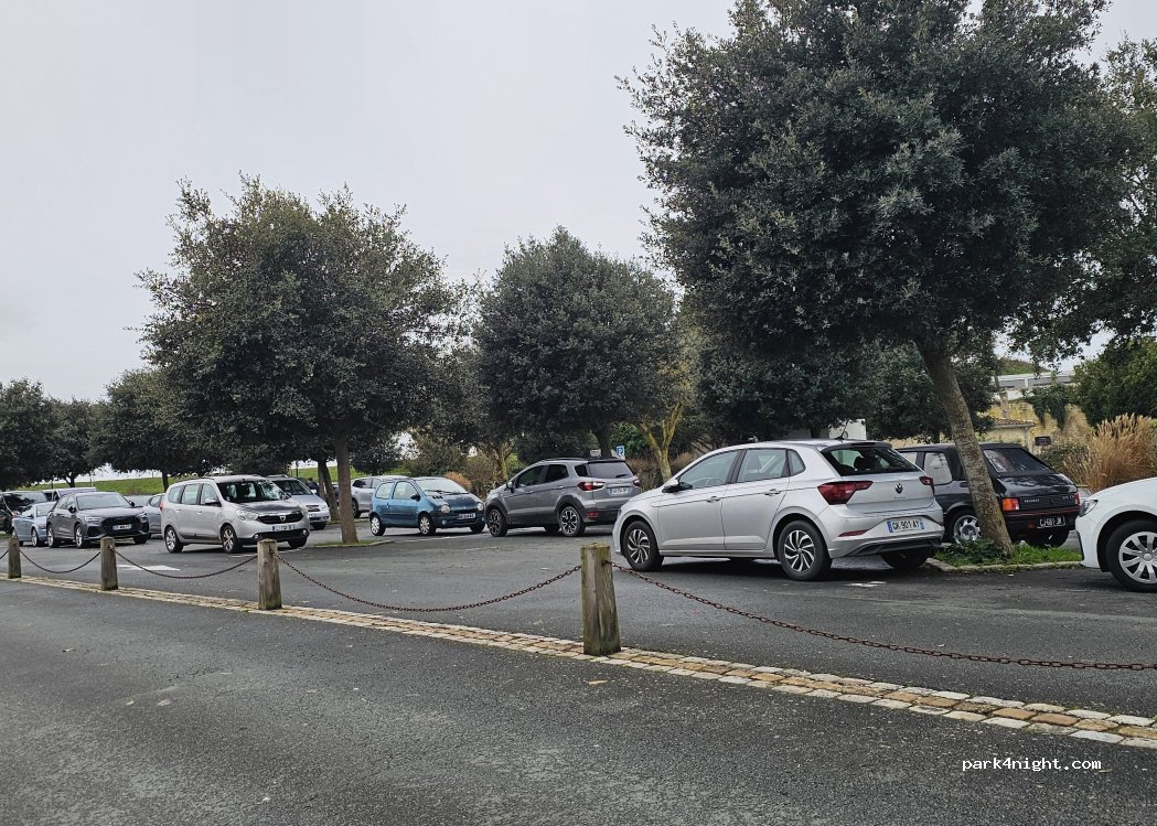 Seul parking payant sans limite de hauteur et sans panneau d'interdiction trouvé sur Saint Martin de Ré, hormis l'aire de camping-car a 11 €, idéal pour passage de quelques heures pour la visite de la ville et du port, à 2 pas du parking.