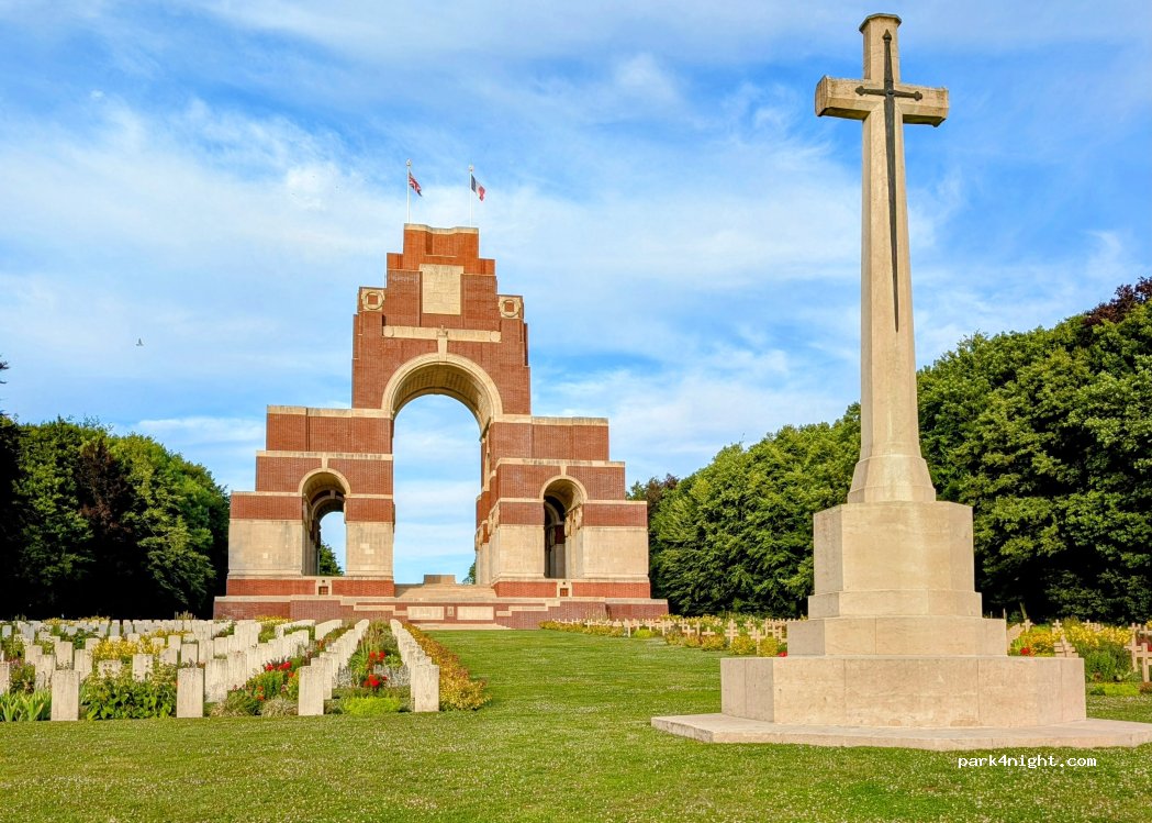 A fantastic location, no services but very quiet and peaceful. Wanted to see the monument lit up at night but unfortunately rain stopped play. The museum is fantastic and well worth a visit. We did have two lovely (and hungry) little feline visitors . Ended up staying 2 nights in order to visit other war cemeteries. In the area. Would definitely recommend