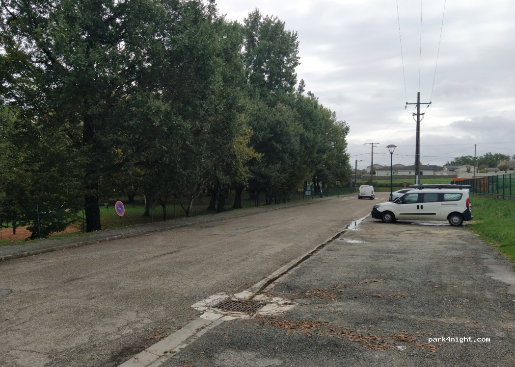 Actuellement occupé par des engins de travaux. sinon il s'agit de places le long du stade à proximité immédiate d'une route peu passante mais bien là.