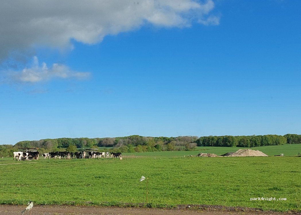 Great place, everything was available, even a kitchen and a fridge with some cold drinks. The farm has cows and they treat them very well. Around the farm are a few paths to walk with the dog. Super friendly owners, we could easily contact them and reserve a spot for the night.