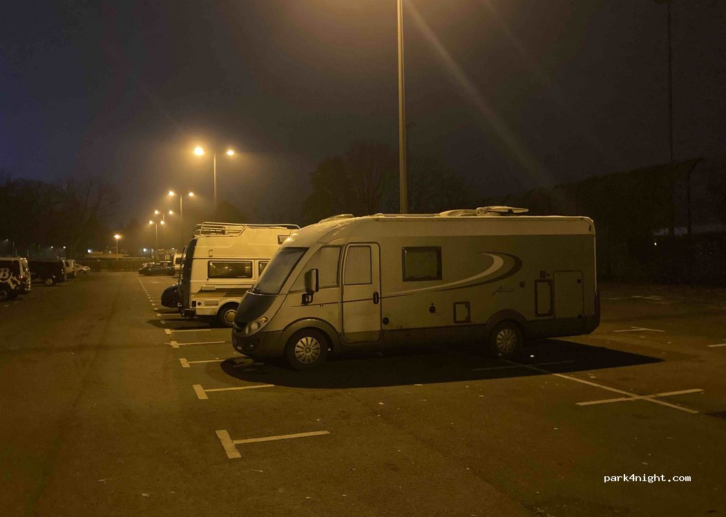 Nous avons passé 3 nuits sur ce parking calme la nuit durant le week-end du marathon de Berlin. Du monde toute la journée lié aux infrastructures sportives mais pas gênant. Station de métro accessible rapidement en moins de 10 minutes à pied. Pas de service sur place.