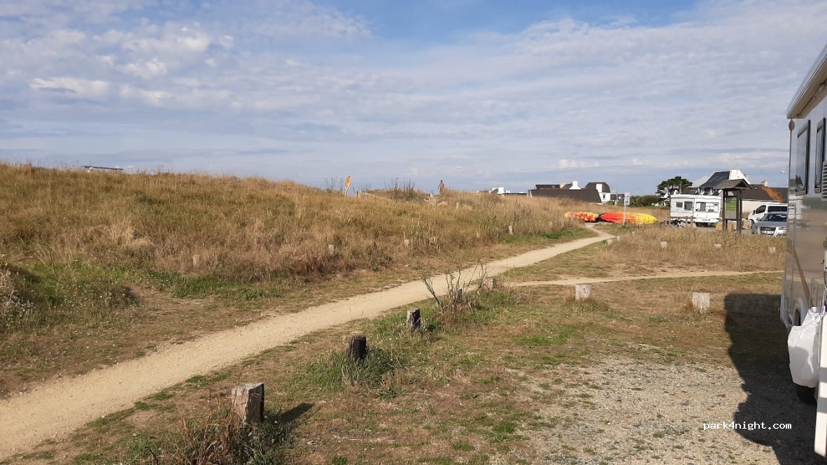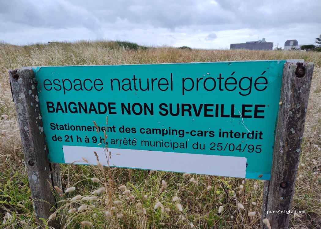 Emplacement interdit pour la nuit et tout le long de la plage vers Lesconil d'ailleurs. Stationnement gratuit parking Allende dans le bourg du Guilvinec ou alors Lesconil parking Résistance.