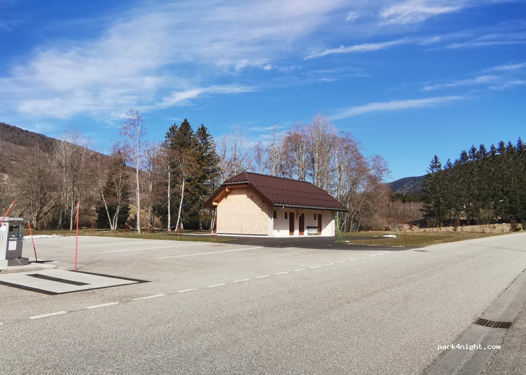 parking très calme,avec vue sur la montagne dommage situé un peu loin des télécabines pour aller sur les pistes de skis,le payement pour l'électricité au dessus de la vidange des WC pas terrible mais stationnement gratuit