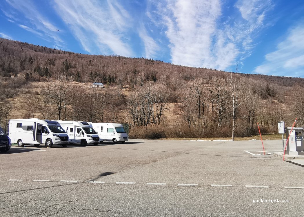 Nous avons passé une nuit nous étions 3 camping-cars, une nuit très calme de plus la borne automatique où tout est gratuit vidange, plein d'eau, électricité il suffit d'aller appuyer sur le bouton vert pour déclencher les services qui durent 1h, le top toutes les communes en France devraient prendre exemple bravo au Maire de Lélex.