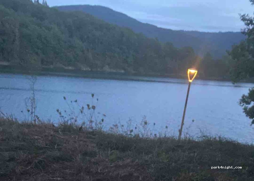 Il faut attendre la fin de journée que les voitures soient partis pour trouver une place face au lac. Nous y avons passé 2 nuits sans encombre. Toilettes à proximité. Je recommande