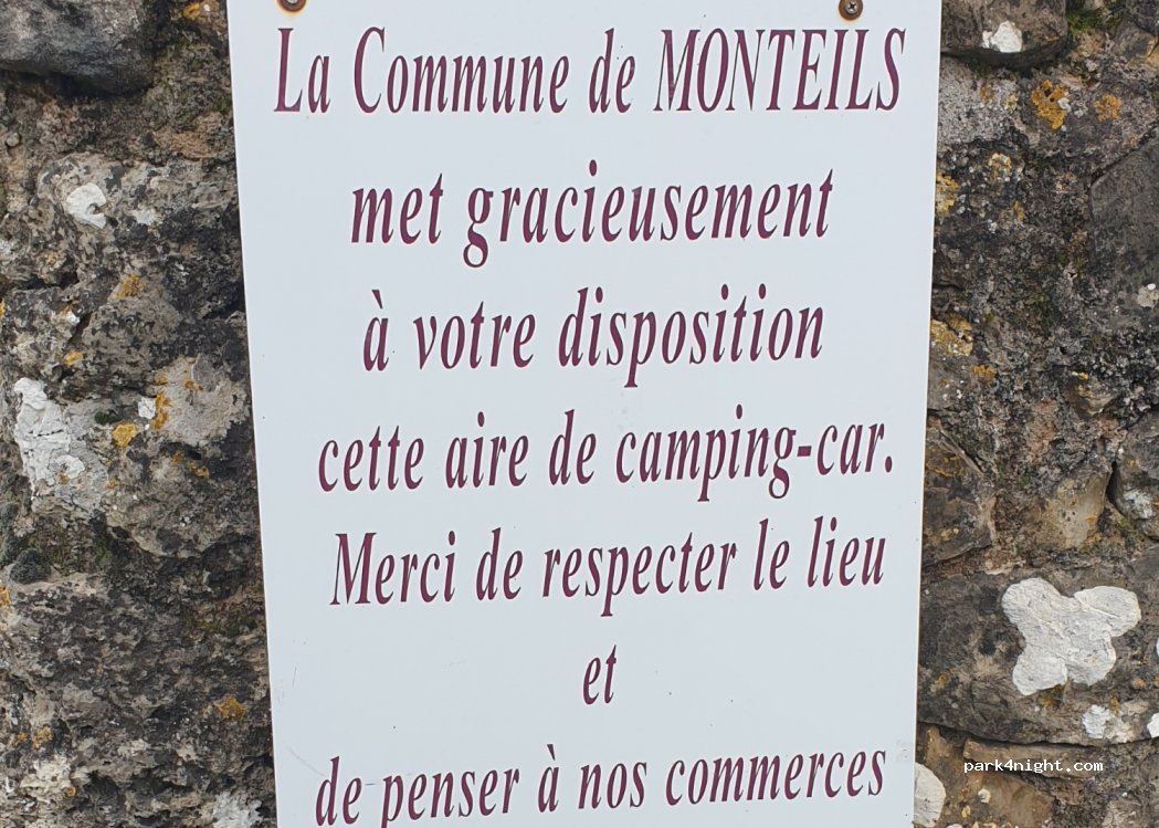Un grand merci à la commune de Monteils pour la mise à disposition de cette aire avec les services gratuits. De plus environnement super agréable. Ruisseau et chemin de rando à proximité. Bien entendu, réciproquement nous pensons aux commerçants et artisans de la commune.