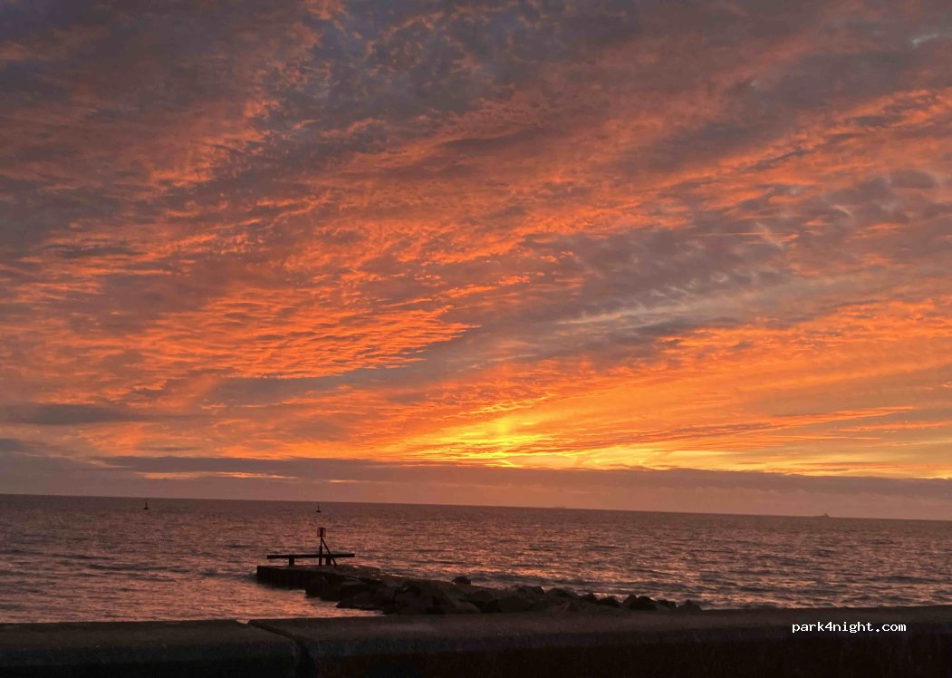 Arrived very late (almost 1am)… plenty of parking, quiet, felt safe. Right next to the sea. Would recommend!