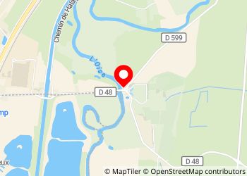 À côté du pont devant l'office de tourisme. Egalement devant les ruines de l'abbaye d'Ourscamp. .