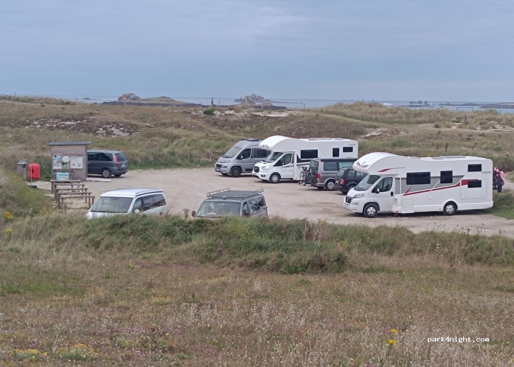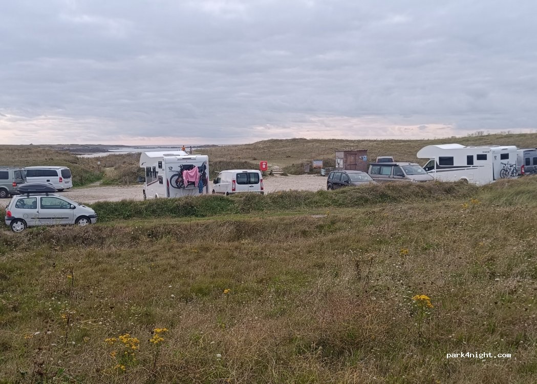 Très bonne nuit sur ce parking avec toilettes sèches très propres pour une fois (d 'après mes expériences) il y a aussi une poubelle et le sol assez plat, nous étions 5 véhicules, alors que le vent et la pluie battante faisait rage. Le matin nous avons pu faire une super ballade sur le sentier littoral.