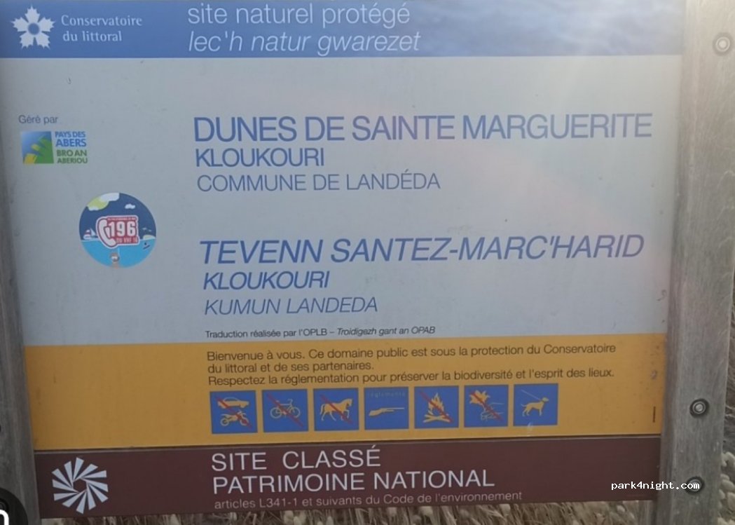 ☝ Per fare ciò, vorrai tornare al Campeggio Comunale * o al Campeggio Abers **** (entrambi a pagamento), oppure attualmente il comune di Landéda ti accoglie gratuitamente nel "Parcheggio pubblico generale" presso l'Aber Wrac ' h (via Ar Palud).
