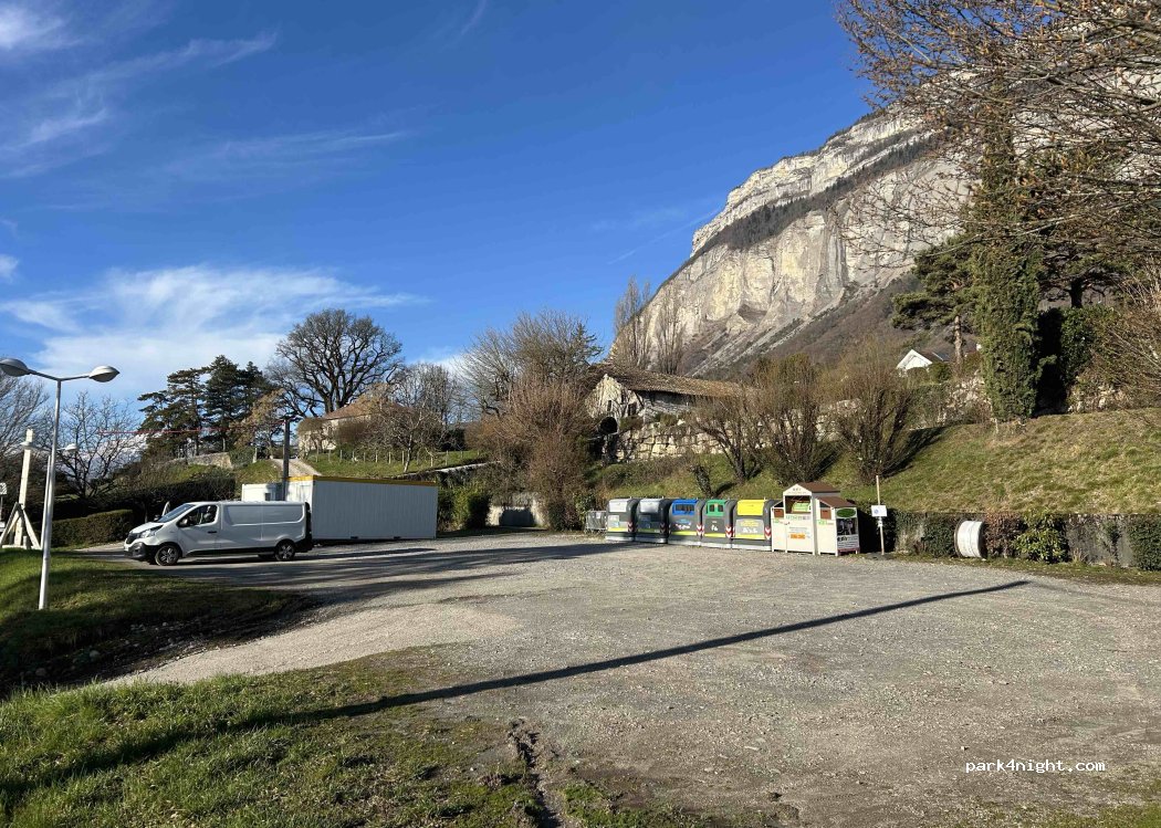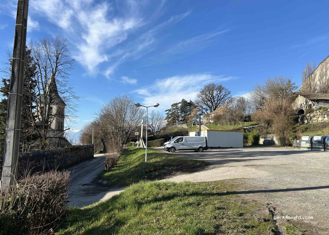 Parking de l'église. tres calme dans une zone résidentielle préservée et tranquille de l'agglomération grenobloise. plat. beaucoup de place. toilettes. moins accessible aux grands camping-car. Attention quitter la RD1090 au panneau "Biviers les Tières" pour éviter le chemin de Billerey qui est limité à 2m10 de large.