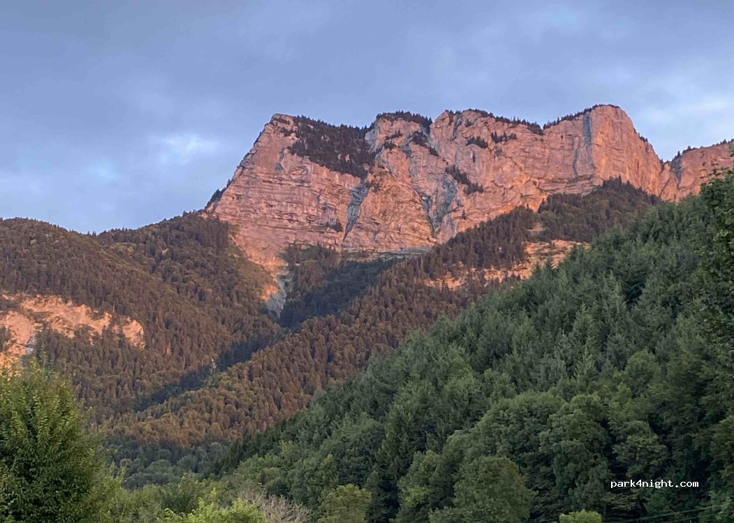 Arrivée tardive en partant de Grenoble où la canicule sévit pour trouver un peu de fraîcheur pour la nuit. Lieu sympa avec toilettes et fontaine. Espace de verdure avec de l'ombre appréciable dès le matin.
