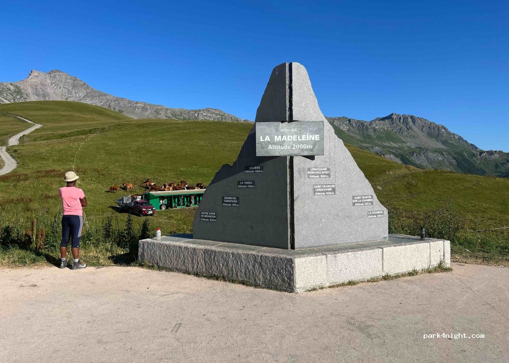 Grand parking gratuit du col de la Madeleine. Sans service.