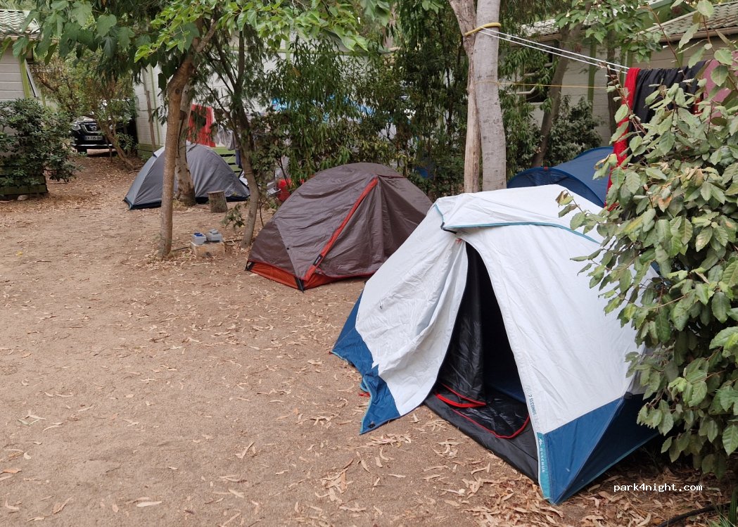 Camping très sympa avec des emplacements ombragés sous les eucalyptus. Sanitaires propres, branchement électrique 25e l emplacement pour un van. Accueil au top. 10 min du centre et plage à 300m