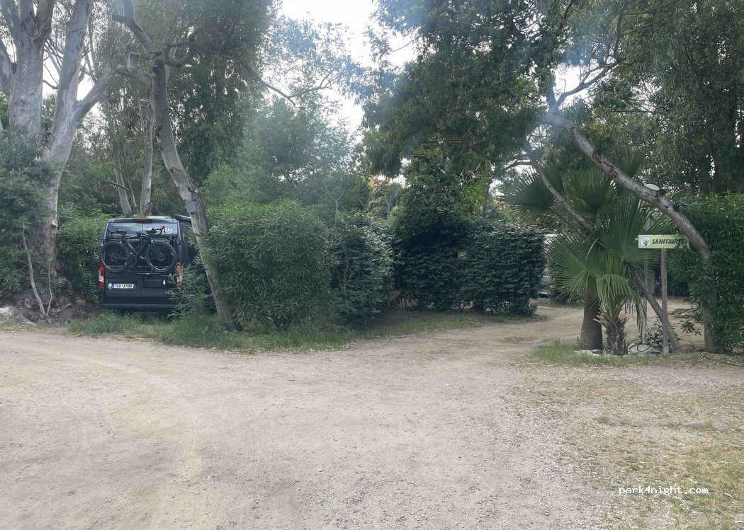 Petit camping très ombragé les emplacements ne sont pas très grand pas idéal pour camping car mais bon pour van proche plage et centre Calvi accueil très agréable tarif un peu élevé mais c est Calvi 24,50€ a 2 en van