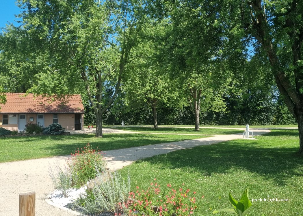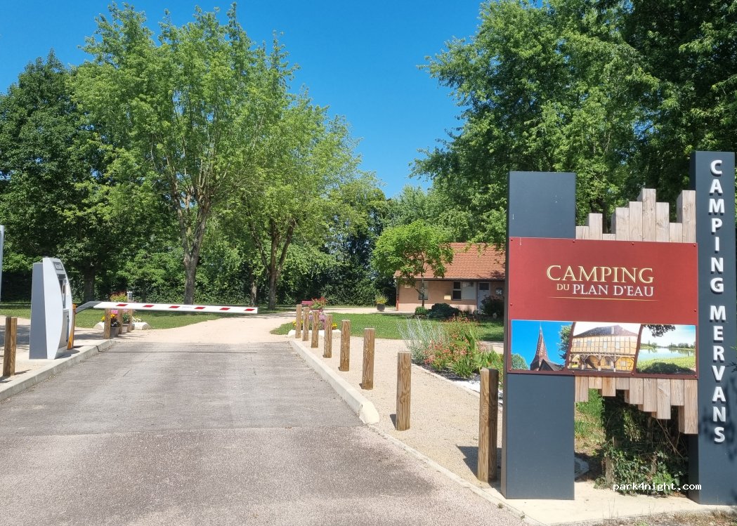 Petit parking à côté du camping municipal entouré d'eau. Nous y avons passé une nuit au calme. On entend le bruit du déversoir et de quelques voitures passagères.