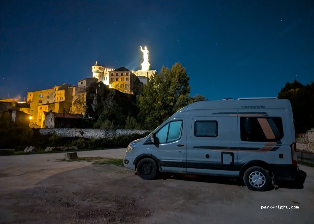 Nous y sommes arrivés à 13h ... pour prendre le repas et aller visiter le Puy en Velay. Finalement nous y avons passé la nuit. très calme au bord de l'eau, à côté d'une école (donc réservé aux WE et vacances scolaires car en face de la sortie) et une résidence séniors. 1 seule place mais assez grande pour faire demi-tour avec un attelage de 11m. A 1,5km du centre historique du Puy. Pas de service