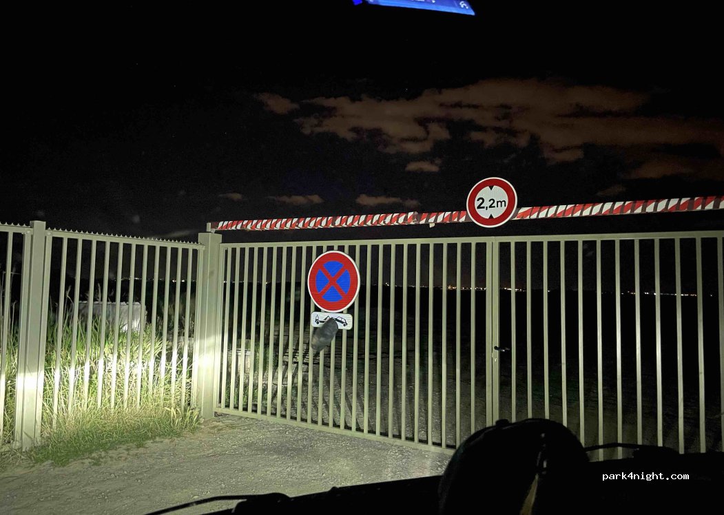 Parking fermé lors de mon passage mais je ai dormi sur le « rond-point ». Ok pour arrivée tardive et départ tôt. La gendarmerie est passée vers minuit mais n’a pas fait bouger les 3 campers présents