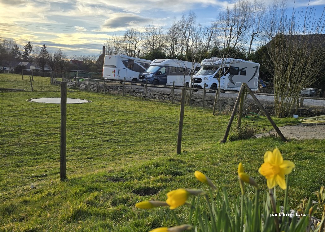 Uitstekende plek bij een restaurantje met visvijvers. Ongeveer 6 staanplaatsen op het harde gedeelte en ? op de grasplekken. Prettige ontvangst door eigenaar Vincent. Eenvoudige Franse keuken, prima gegeten. ‘s Morgens ook ontbijt mogelijk met eigen gemaakte jam. Of gewoon brood bestellen. Lekker informeel allemaal en gratis staanplaats. Aanrader!