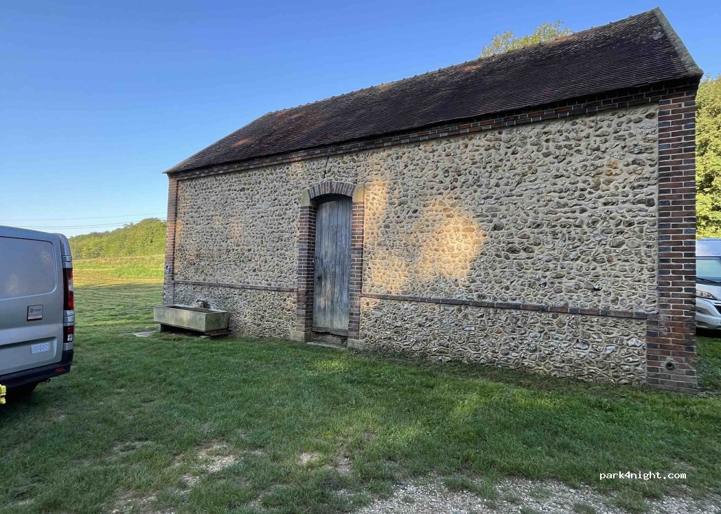 le lavoir est bien l'endroit d'accès , prenez le petit chemin qui suit la forêt et vous y trouverez un superbe espace pour de nombreux véhicules. Au calme, à l'ombre en retrait de la route, on entend légèrement les voitures au loin. Sinon chants d'oiseaux et nature , Parfait pour se ressourcer. ça vaut le détour !
