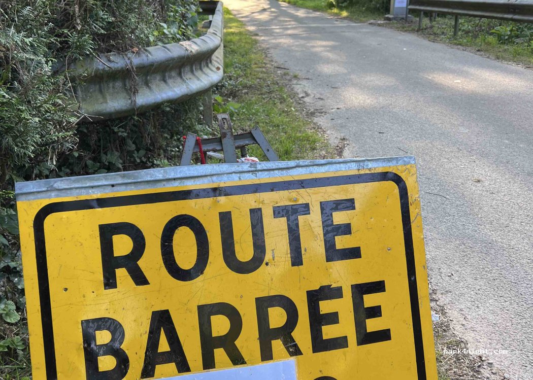 Route barrée et Zone inaccessible car interdite par arrêté municipal du 1er mai au 15 septembre. Trop de nuisances sonores dues aux nombreux passages de camping-cars et autres usagers.
