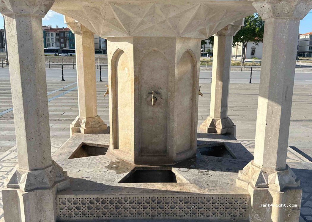 super immense parking près de toutes les attractions, fontaine 4 robinets. Très tranquille la nuit et le jour. Très bon marché légumes fruits fromages viandes poissons à 5mn du Mevlevi museum dans le bedesten.